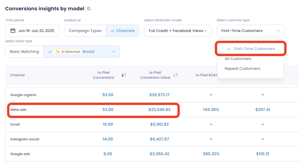 2. If you’re a <$20k store, you can try a first-party pixel (like Le Pixel) and track which channel is truly bringing in these valuable new users